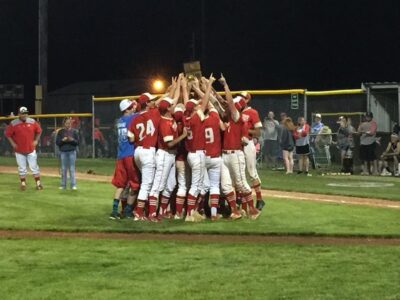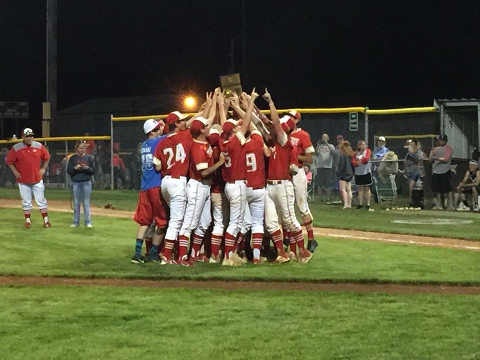 Tonganoxie High celebrates a Class 4A Division I regional title on its home field May 15, 2018, at the Leavenworth County Fairgrounds.