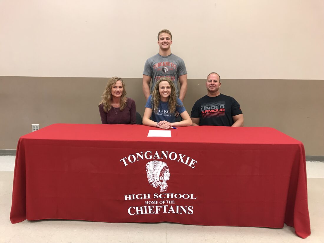 Corinn Searcy signs a National Letter of Intent to compete in track at Washburn University in Topeka. The May Tonganoxie High School graduate was a standout for THS track.