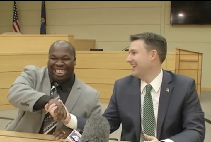 - Leavenworth County Attorney Todd Thompson, right, shares a handshake and smiles with Leavenworth Mayor Jermaine Wilson. Wilson, who served three years in prison on drug charges, has since gotten involved in public service. He was elected to the Leavenworth City Council in 2017 and appointed mayor in January. Wilson’s election was made possible because he was granted expungement after serving prion time. Thompson will lead an informational presentation about expungement at Lawrence Public Library.