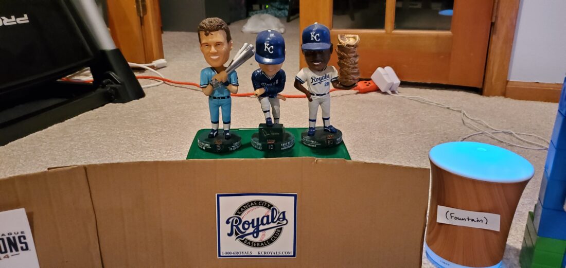 Nutter, who now lives in Olathe, has become an avid bobblehead collector. He is part of a Facebook group of Royals memorabilia enthusiasts and saw a post from a fan who created a field of sorts in his home, putting bobble head “players” at their positions.