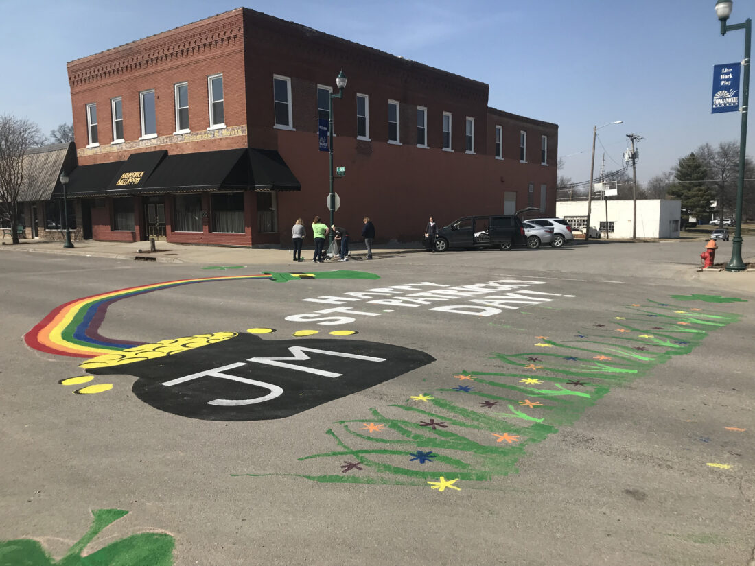 - Fourth Street is ready for the St. Patrick’s Parade in this photo from 2018. Tonganoxie High School art students again plan to decorate the downtown for Saturday’s St. Pat’s Parade, weather permitting. The parade starts at 11 a.m. Saturday.
