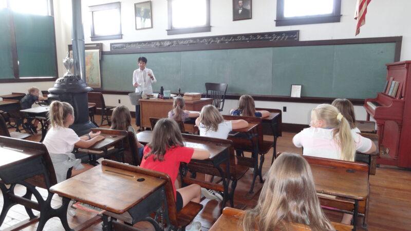Students learned about the one-room schoolhouse at the Honey Valley School from Janet Burnett in the morning and Sarah Kettler in the afternoon.