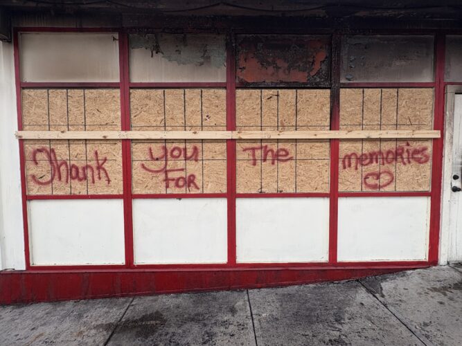 A message greets passersby this week amid the damage left at Flashbacks restaurant in downtown Tonganoxie. Friday’s fire caused massive damage to the diner.The Tonganoxie community is rallying around the family of a longtime downtown restaurant that suffered massive fire damage Friday.
