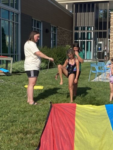 Water slide time offers a reprieve from the heat Thursday, July 3, 2025, at Tonganoxie Public Library.The Tonganoxie area is under an extreme heat warning through Thursday evening.
